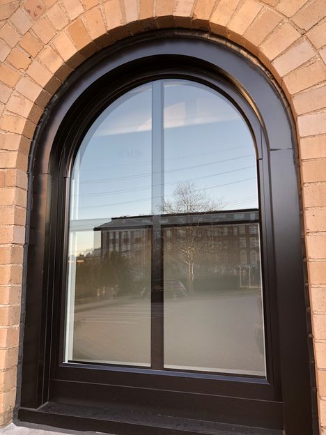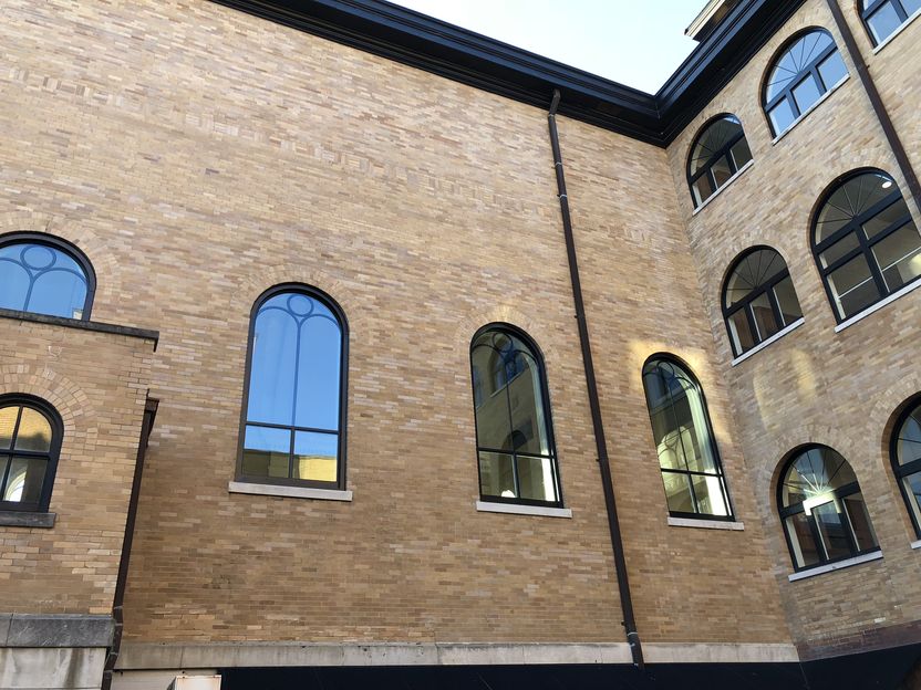 Project Challenge/Solution: Universal Window custom-manufactured the replacement windows to maintain the original architecture. The installed windows have an arched exterior while the interior displays a rectangular design. 15% savings in energy cost. Sony – Challenge The openings had a half-circle at the top of the window but the interior of the window was rectangular. Universal was able to marry the panning and the window to enable the window to into the opening correctly. 27 400 DH
